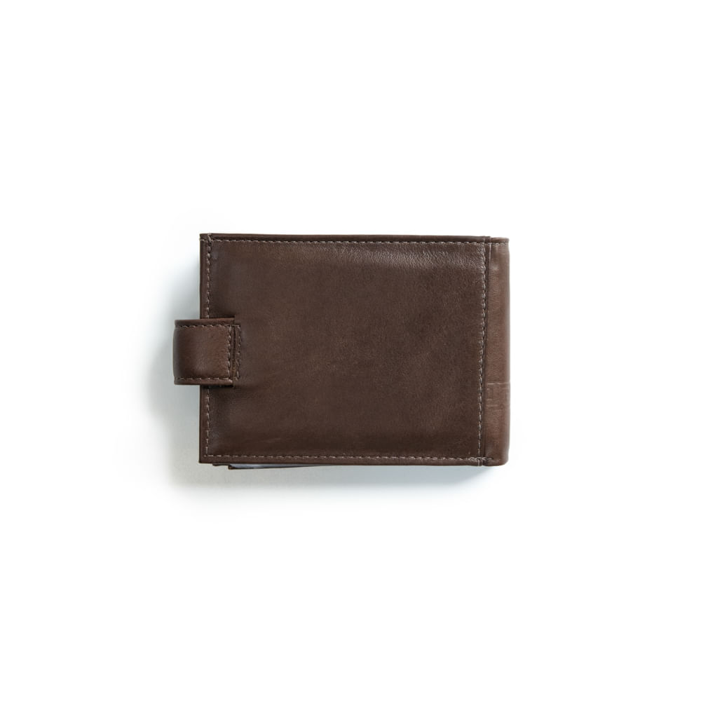 Carteira Masculina de Couro com Fecho em Botão Grécia Café