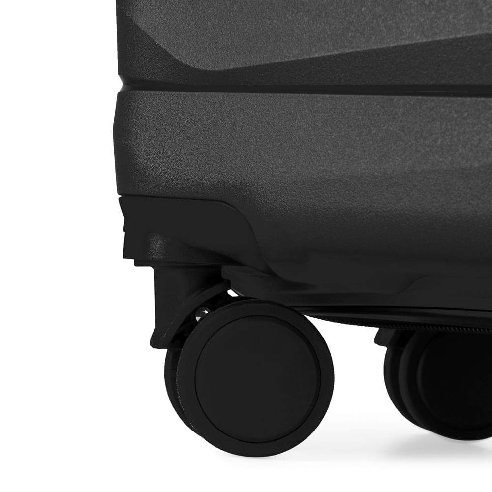 As rodas com giro 360º facilitam o deslocamento da mala, fazendo com que ela possa ser conduzida em qualquer direção, sem precisar incliná-la e sem fazer esforço.