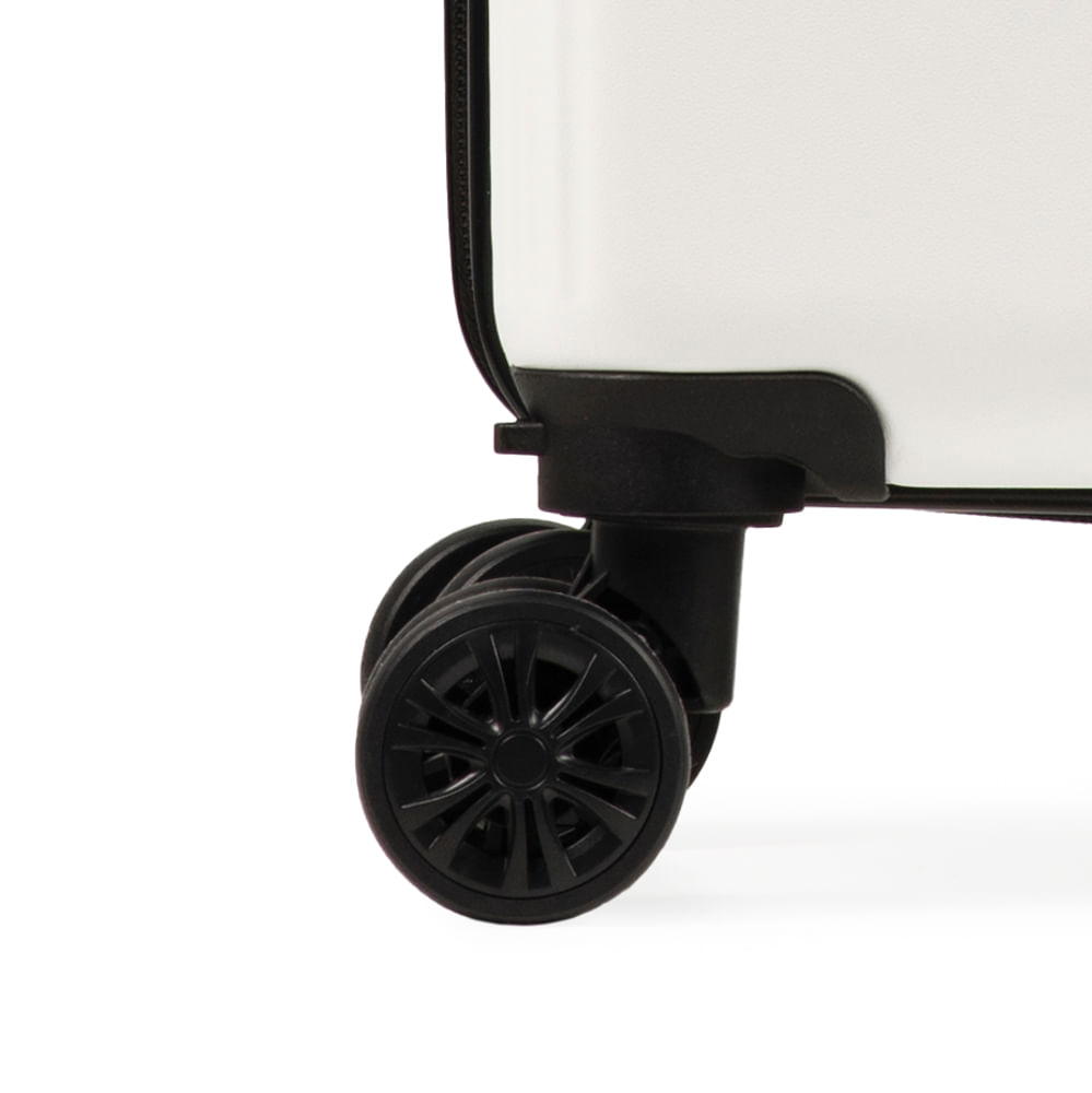 As rodas com giro 360º facilitam o deslocamento da mala, fazendo com que ela possa ser conduzida em qualquer direção, sem precisar incliná-la e sem fazer esforço.