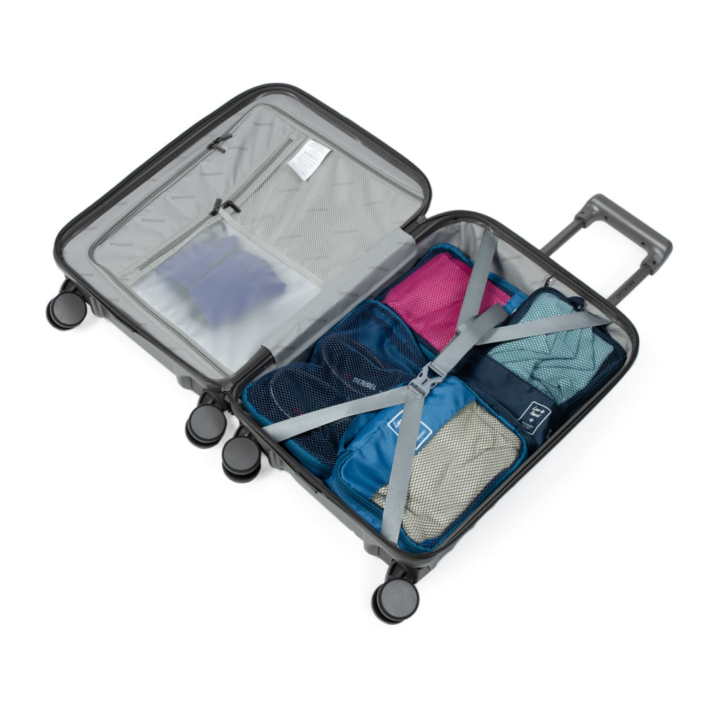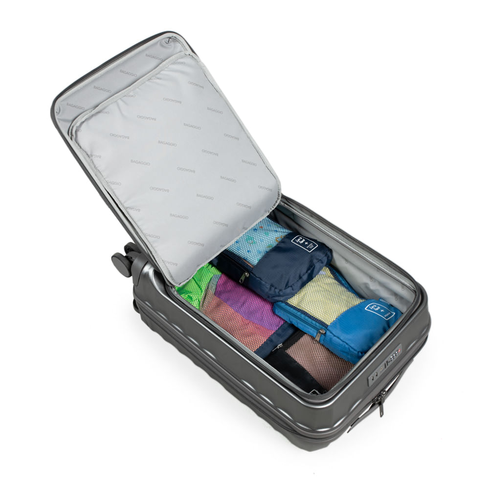 Amplo compartimento Interno A mala conta com divisórias simples e elásticos com trava, ideais para manter seus itens no lugar. Além disso, ela possui amplo espaço interno.