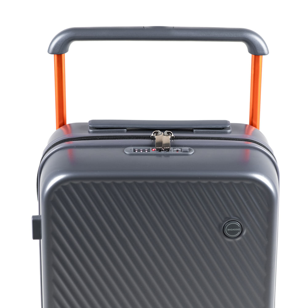 Uma alça localizada na parte superior central facilita a retirada da mala da esteira ou compartimentos de bagagem, garantindo mais praticidade e conforto.
