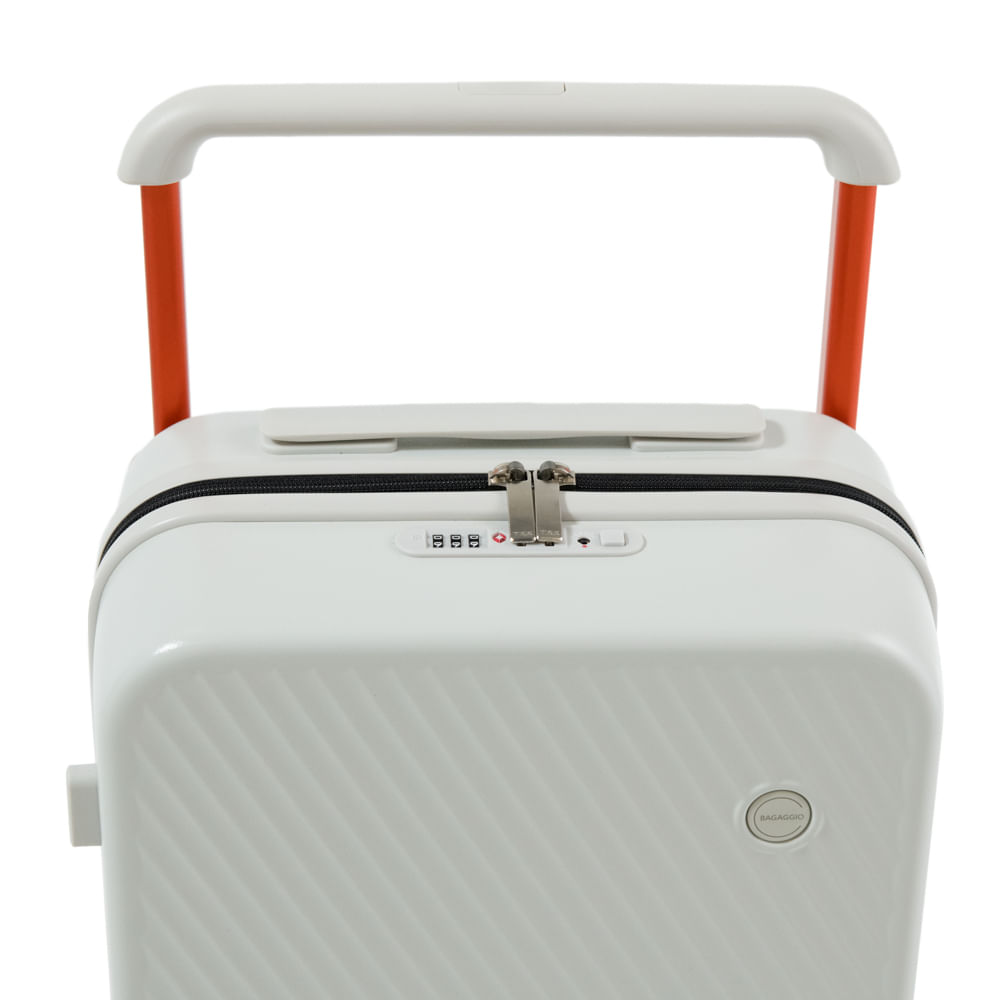 Uma alça localizada na parte superior central facilita a retirada da mala da esteira ou compartimentos de bagagem, garantindo mais praticidade e conforto.