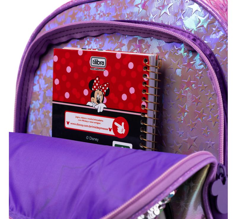 Kit Mochila de Rodinha e Lancheira Térmica Infantil Feminina Minnie Lilás