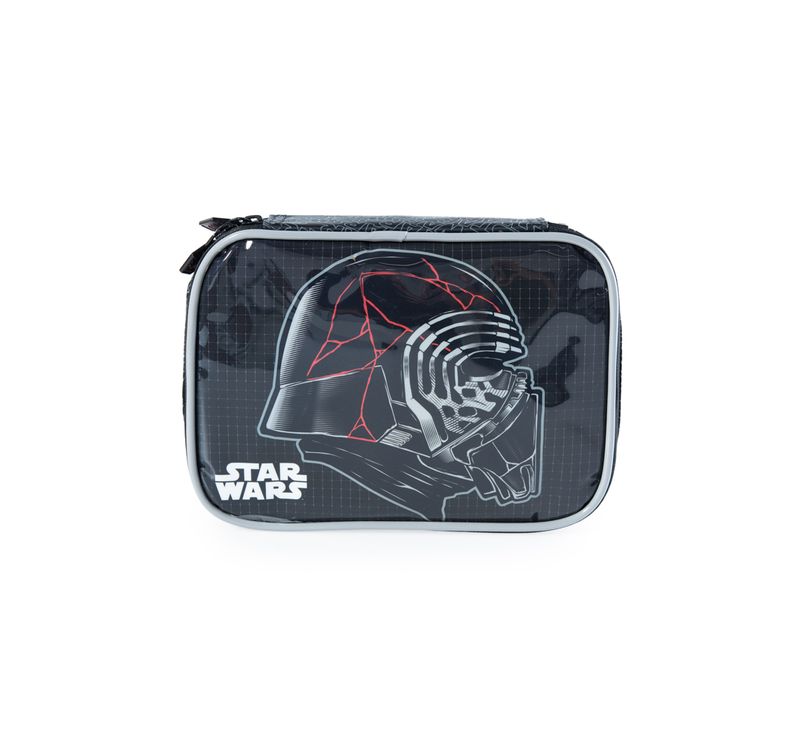 O Kit Mochila Escolar Star Wars Kylo Ren com Lancheira e Estojo Grande Preto é composto pelos itens: Mochila Escolar Star Wars Kylo Ren, Estojo Escolar Grande Star Wars Kylo Ren, Lancheira Escolar Star Wars Kylo Ren.
