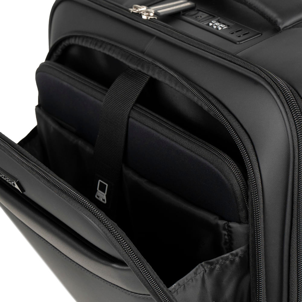 Essa mala vai à bordo com você no avião. Não tem necessidade despachar a bagagem.