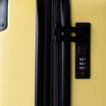 O cadeado com senha vem embutido na mala. Nele, você cadastra uma senha numérica para prender os fechos e viajar com mais segurança.