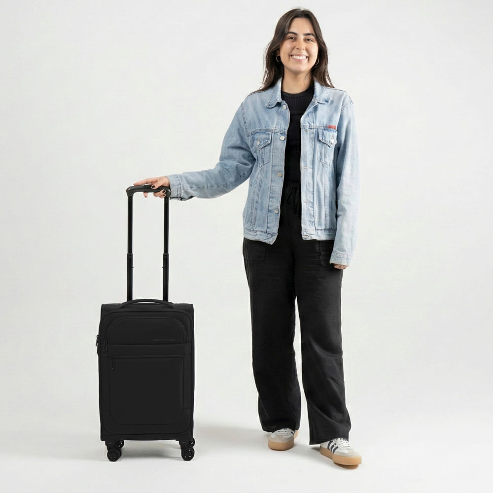 Mala de Bordo Edimburgo Preta é tamanho P e foi desenvolvida para atender aos padrões de bagagem de mão da maioria das companhias aéreas.