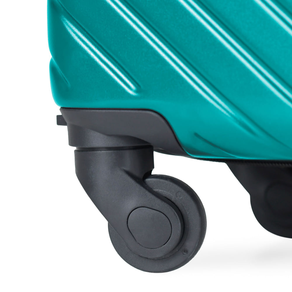 As rodas com giro 360º facilitam o deslocamento da mala de viagem, fazendo com que ela possa ser conduzida em qualquer direção, sem precisar incliná-la e sem fazer esforço.