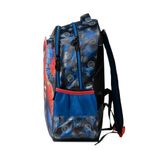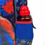 As laterais possuem bolsos em tela para garrafinhas, garantindo praticidade durante a rotina escolar.