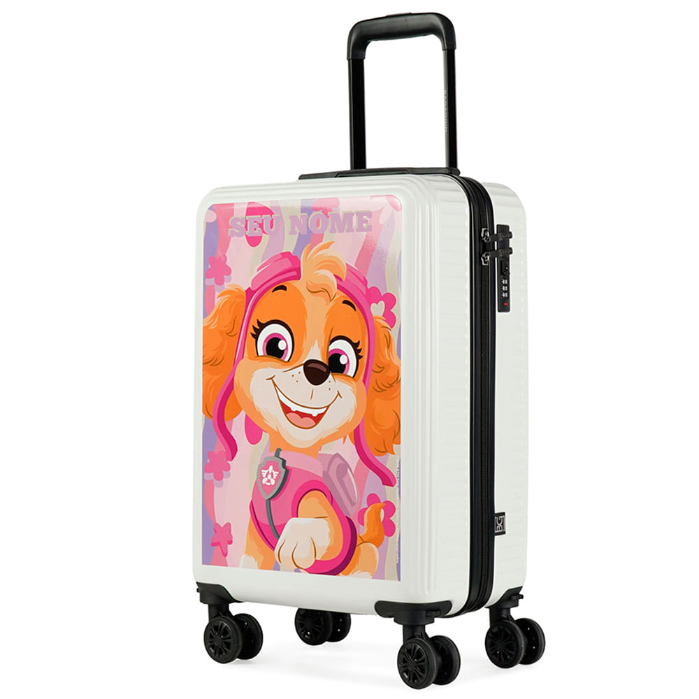 Transforme cada viagem em uma nova missão com a Mala de Viagem Patrulha Canina Skye Rosa. Desenvolvida em material rígido de alta durabilidade, ela traz a filhote policial favorito da criançada em uma estampa vibrante, unindo estilo e resistência. O modelo conta com quatro rodas com giro 360° e puxador retrátil, garantindo leveza e facilidade de transporte para os pequenos. Com cadeado de segredo integrado para maior segurança e um interior organizado com divisória com zíper e cintas elásticas, é a mala infantil de bordo perfeita para manter roupas e brinquedos protegidos e arrumados durante todo o passeio.