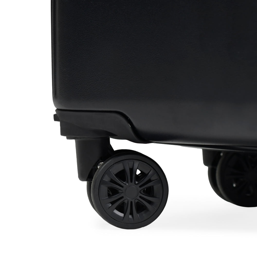 As rodas com giro 360º facilitam o deslocamento da mala, fazendo com que ela possa ser conduzida em qualquer direção, sem precisar incliná-la e sem fazer esforço.